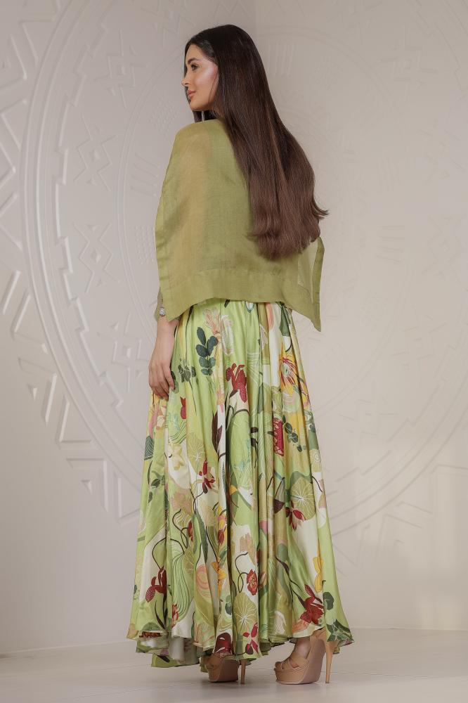 استلهمي سحر الطبيعة وجاذبيتها مع طقم سحر الشرق، حيث تتلاقى النعومة والجرأة في تناغم استثنائي يمنحك إطلالة آسرة وأنيقة، فقد صُمم الطقم من ثلاث قطع متميزة، يجتمع فيها الكيب المطرز بترتر لامع مع لمسة من الكريب، والتوب الداخلي من الكريب الثقيل الناعم، والتنورة الساتان الواسعة ذات القصة الكلوش التي تتحرّك برشاقة وجاذبية.